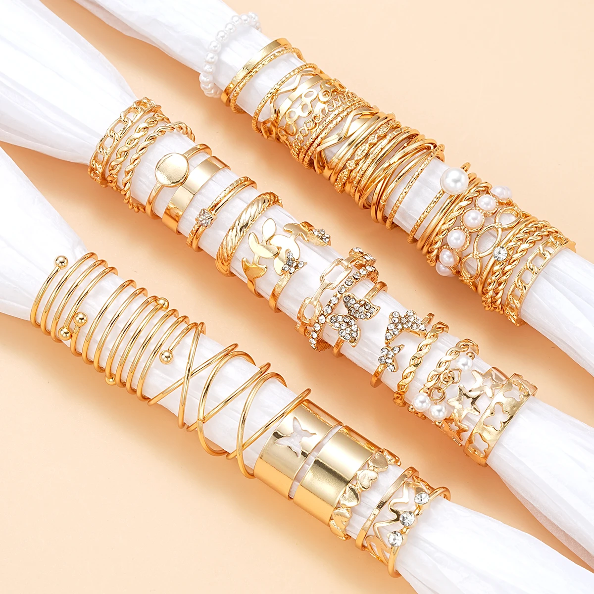 Vintage Damen-Ring-Set mit Herz, Schlange & Schmetterling – 58-teiliges Fingerring-Set in Goldoptik